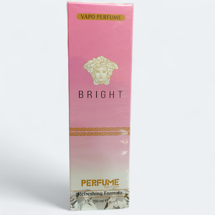 بادی اسپلش Bright با رایحهای مشابه برایت کریستال (Bright Crystal) از برند ورساچه (Versace)، یک رایحه زنانه لطیف، درخشان و جذاب است که ترکیبی از رایحههای گلی، میوهای و آبی را در خود جای داده است.