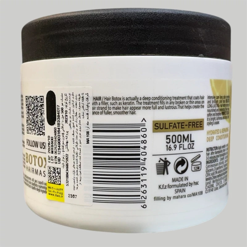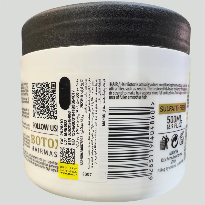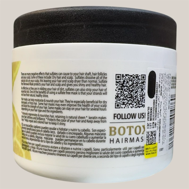 ماسک مو بوتاکس رنوال بدون سولفات وپارابن احیا کننده سازگار با مو های اسیب دیده