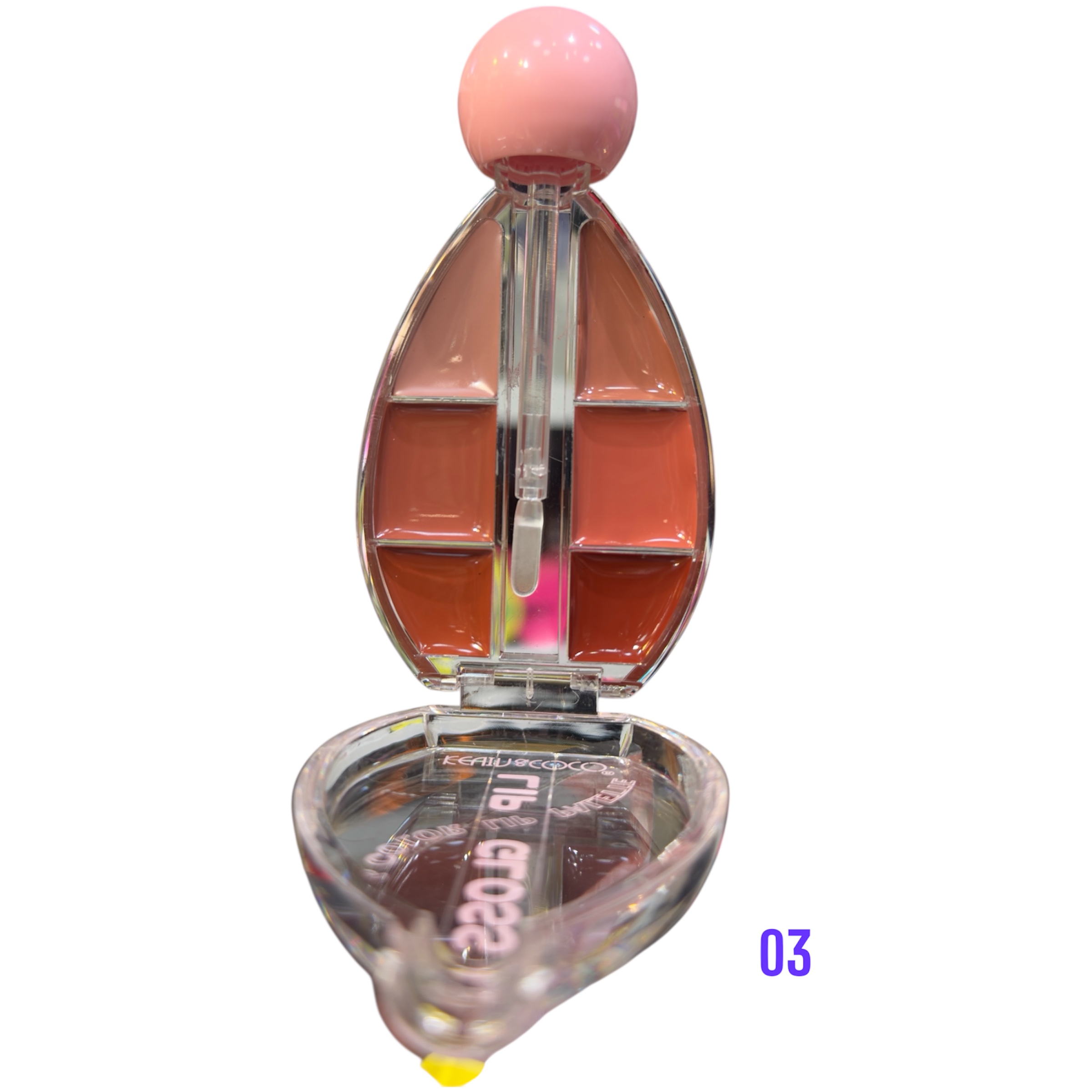 پالت رژ لب کیون کوکو یه محصولی هست که در بسته بندی خود 6 رنگ رژ لب داره و شمارو در انتخاب رنگ ازاد میزاره و دیگه دغدغه داشتن چند رژ لب رو ندارین این پالت در 4 تنوع که در هر پالت 6 رنگ مختلف داره . کیفیت رژ ها عالی هستن و به عنوان 6 لیپ گلس میتونید از شون استفاده کنید ماندگاری خوبی روی لب ها دارن و جلوه خاص و زیبا به لب هاتون میدن .