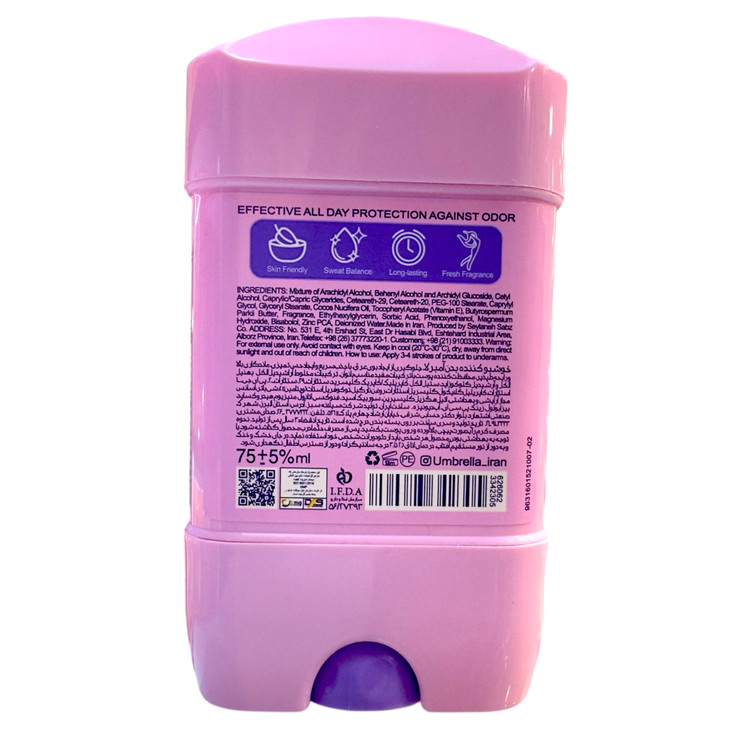 از بین برنده بوی تعریق و بوی بد بدن, جذب سری بدون جای گذاری اثار زردی و خیسی بر روی لباس ,,نرم کنندهو مرطوب کننده پوست , ابرسانی پوست و ایجاد حس تازگی بر روی پوست